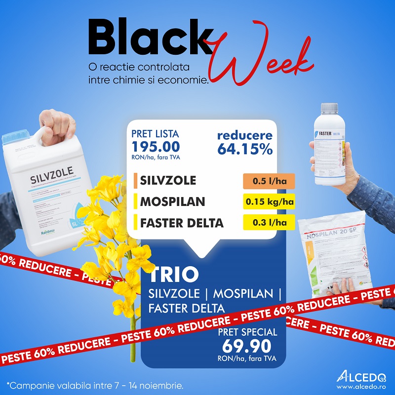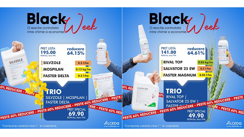 În perioada 7-14 noiembrie 2025, ALCEDO dă startul unei noi campanii Black Week, care aduce reduceri spectaculoase de peste 60% la două pachete de produse pentru protecția plantelor, gândite special pentru acest sezon.
