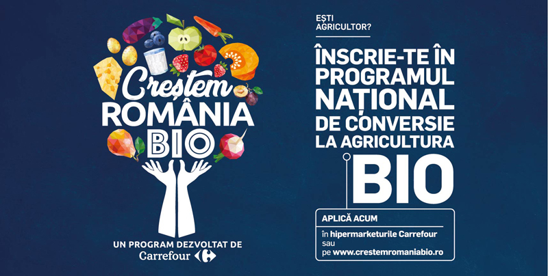 Începând din luna martie, Carrefour România inițiază cel mai amplu program integrat de susținere a fermierilor români care vor să treacă la un model de business de tip agricultură BIO/ecologică. Programul reprezintă un angajament pe termen lung, deschis oricărui fermier român care dorește să fie certificat BIO, prin care Carrefour va oferi suport direct pe toată durata procesului de conversie. Scopul este acela de a crea în România un segment puternic de producători certificați BIO, care să poată oferi românilor șansa de a mânca mai bine.