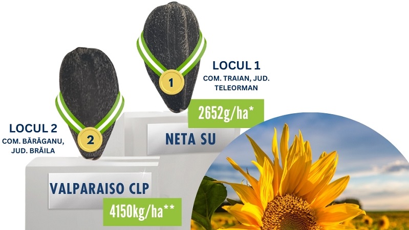 Vă prezentăm astăzi cei doi hibrizi de floarea-soarelui campioni în rețeaua de testare APPR, este vorba despre: Neta SU și Valparaiso CLP.