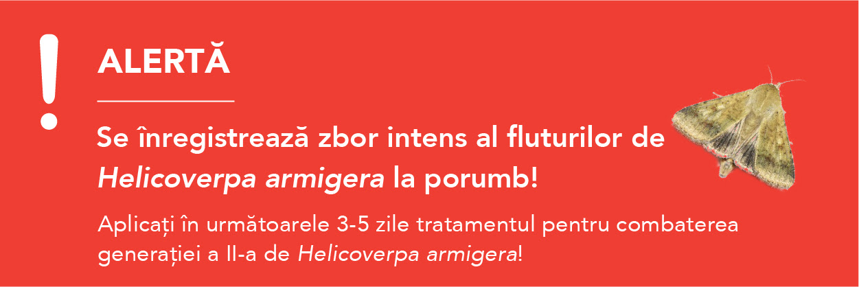 În urma activității de monitorizare a dăunătorilor Ostrinia nubilalis și Helicoverpa armigera din cultura de porumb desfășurată în cadrul programului Arc™ farm intelligence, vă informăm că în ultimele 7-10 zile s-a înregistrat zbor intens al fluturilor de Helicoverpa armigera din generația a II-a în majoritatea zonelor de monitorizare, după cum urmează: