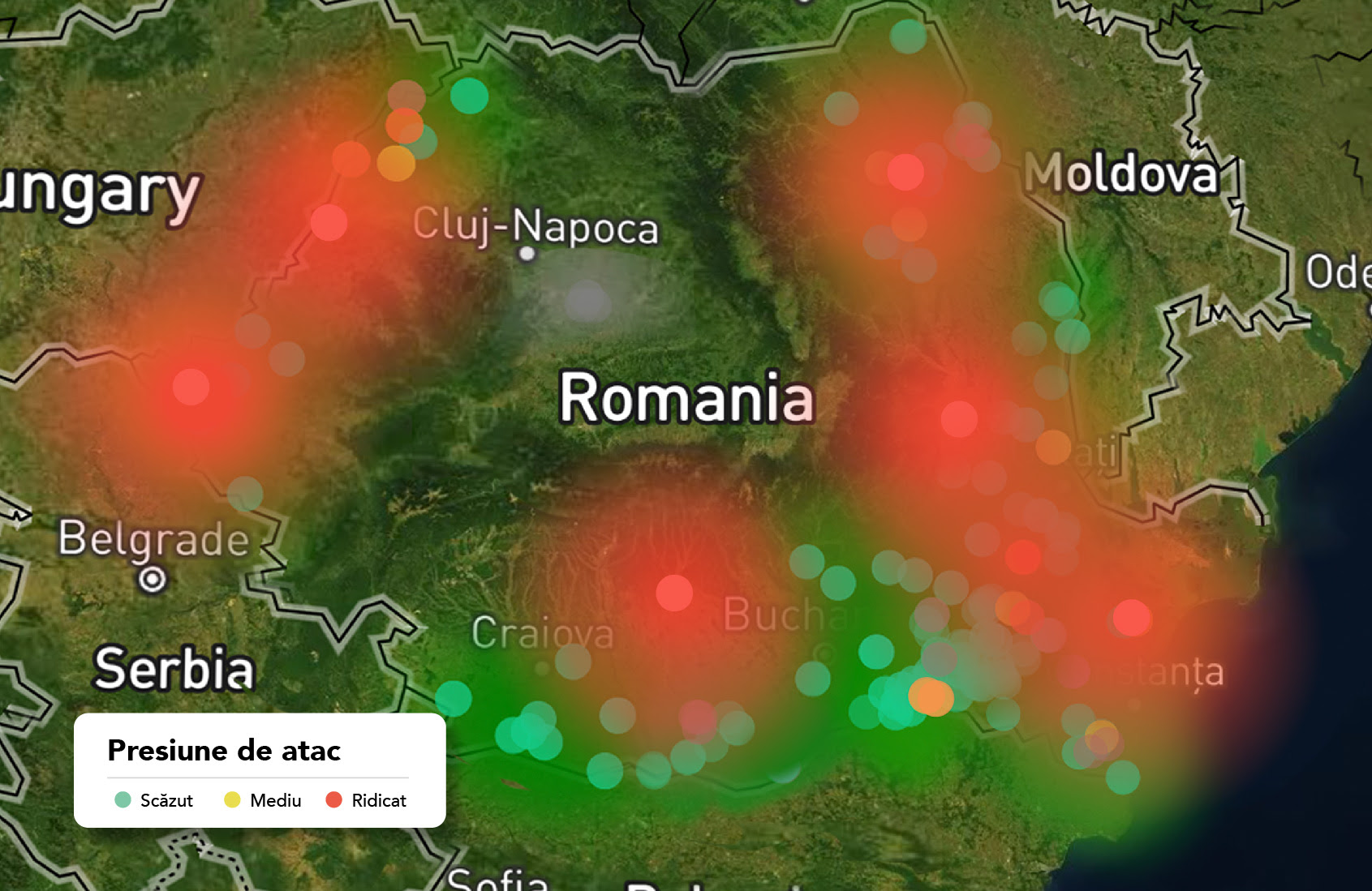- RISC RIDICAT DE ATAC în zonele: Muntenia, Banat, Crișana, Dobrogea și Moldova