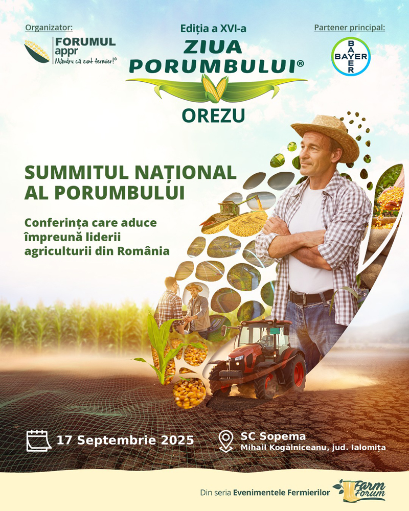 Din cauza efectelor severe ale secetei, evenimentul își schimbă locația și formatul, transformându-se în SUMMITUL NAȚIONAL AL PORUMBULUI – o conferință strategică de nivel premium, ce va reuni liderii agriculturii din România, specialiști recunoscuți și companii de top din agribusiness.